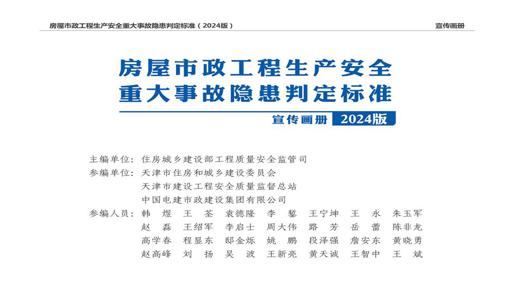 近日住房城鄉(xiāng)建設(shè)部發(fā)布《房屋市政工程生產(chǎn)安全重大事故隱患判定標(biāo)準(zhǔn)(2024版)》,我委會(huì)同市安全質(zhì)量監(jiān)督總站組織中國(guó)電建市政建設(shè)集團(tuán)有限公司編制的配套宣傳畫冊(cè)和海報(bào)也由官方同步發(fā)布。