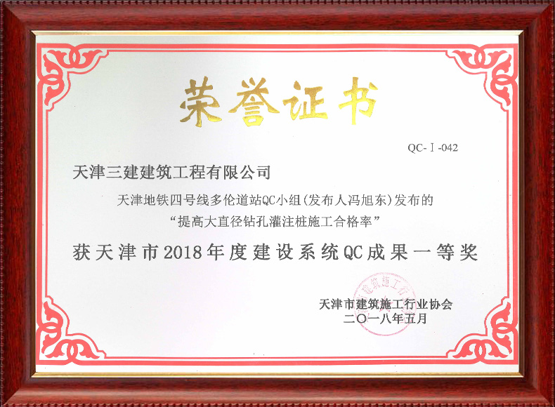 2018地鐵四號線QC成果一等獎